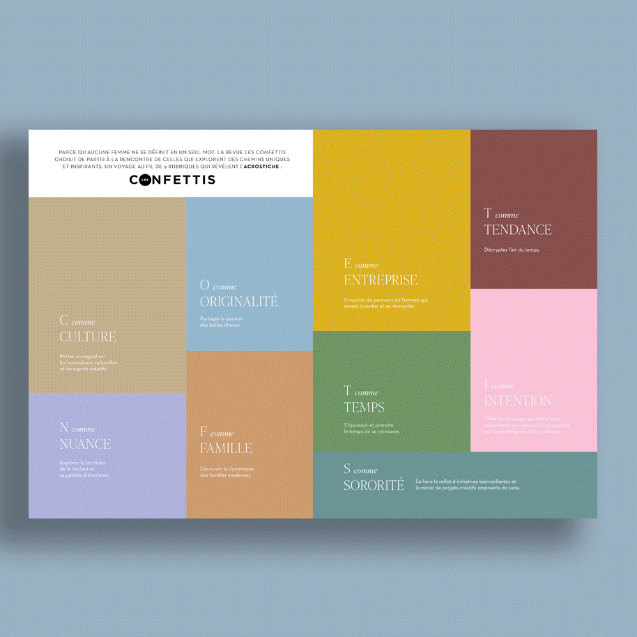 LES CONFETTIS est une revue valorisant la diversité des modes de vie féminins publiée tous les six mois. Elle part à la rencontre de celles qui ont su trouver leur propre chemin.